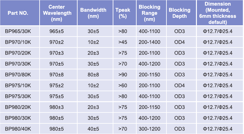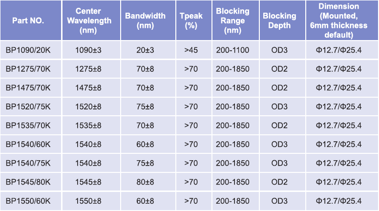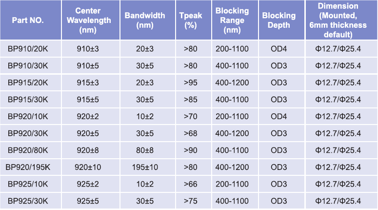 4、庫存:上萬種標準及非標準帶通濾光片產(chǎn)品現(xiàn)貨供應(yīng)