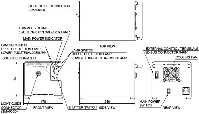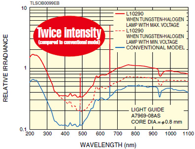 通過(guò)使用安裝在同一外殼內(nèi)的高亮度氘燈和鹵鎢燈,該光源能通過(guò)光波導(dǎo)(單賣(mài))輸出200nm到1600nm的光。輸出的光強(qiáng)大約是現(xiàn)有型號(hào)的兩倍。緊湊的尺寸和較輕的重量使其易于攜帶。機(jī)械快門(mén)和外部控制等實(shí)用的功能使其易于使用。這種新型光源同時(shí)適用于多種型號(hào)的便攜式設(shè)備。