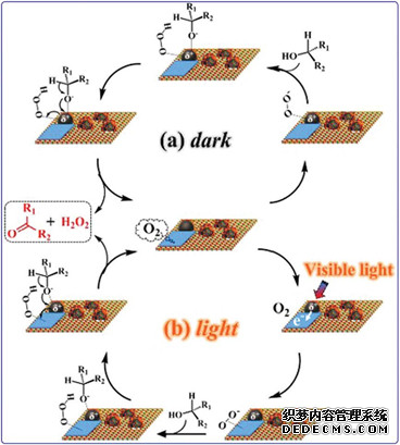TiO2@NC-Ru-T中氮摻雜碳不僅增強(qiáng)了Ru納米顆粒的催化性能,同時通過Mott-Schottky接觸促進(jìn)了光活化Ru納米顆粒中光生電子向TiO2的輸運(yùn)。在可見光照射下,上述效應(yīng)可以大增強(qiáng)乙醇在空氣中的選擇性需氧氧化。這一研究為光催化反應(yīng)中提高可見光吸收和電荷/電子轉(zhuǎn)移提供了可行的方法,也為開發(fā)將太陽能轉(zhuǎn)化為相關(guān)化學(xué)品的能源轉(zhuǎn)換反應(yīng)催化劑指明了新的方向。