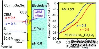 天津大學(xué)鞏金龍、王拓等通過(guò)在Cu( In, Ga) Se2上構(gòu)筑p-n結(jié),與BiVO4光陽(yáng)組成的器件獲得了約1. 01 %的太陽(yáng)能轉(zhuǎn)化效率;(DOI:10.1039/C7EE03650G)