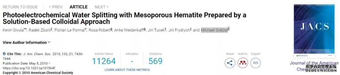 Michael Grätzel課題組在JACS發(fā)表的一項(xiàng)工作中,通過(guò)800 ℃高溫煅燒的方式,無(wú)意中將襯底FTO中的Sn摻雜進(jìn)了Fe2O3,使Fe2O3在1.23 V RHE 處的光電流由10 μA·cm-2提高到了0. 56 mA·cm-2。(上圖,DOI:10.1021/ja101564f)
