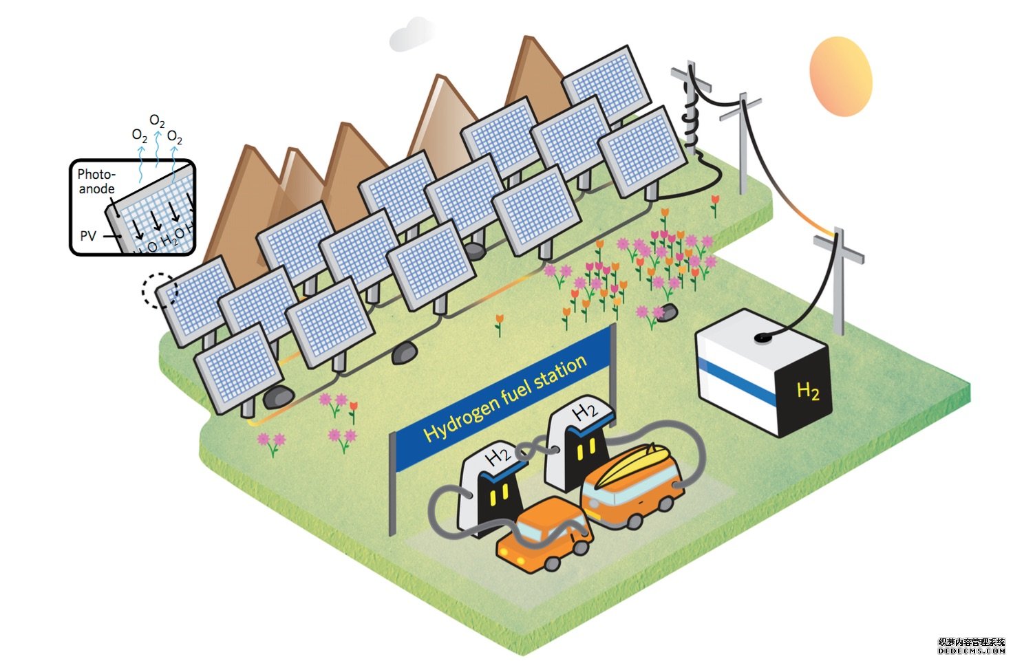 好和諧的一張圖。地毯式的太陽(yáng)能面板加集中式電解水產(chǎn)氫。